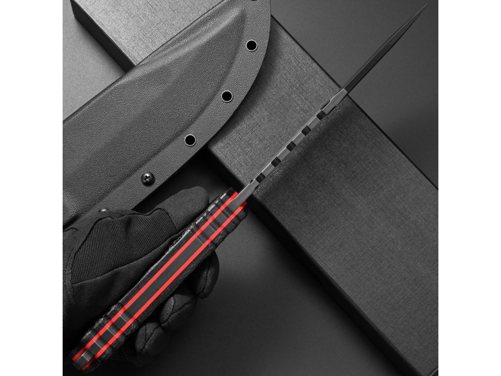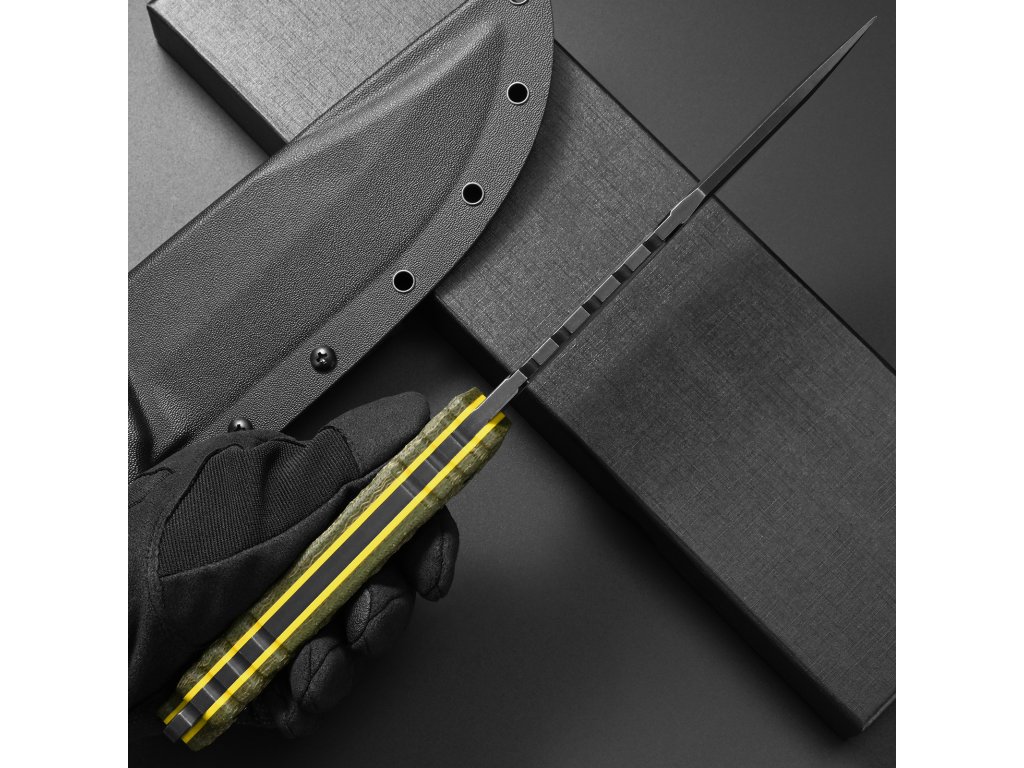Součástí balení je také odolné Kydex pouzdro, které umožňuje bezpečné a pohodlné nošení nože na opasku nebo výstroji. Pouzdro drží nůž pevně na místě, ale zároveň umožňuje rychlé tasení v případě potřeby.