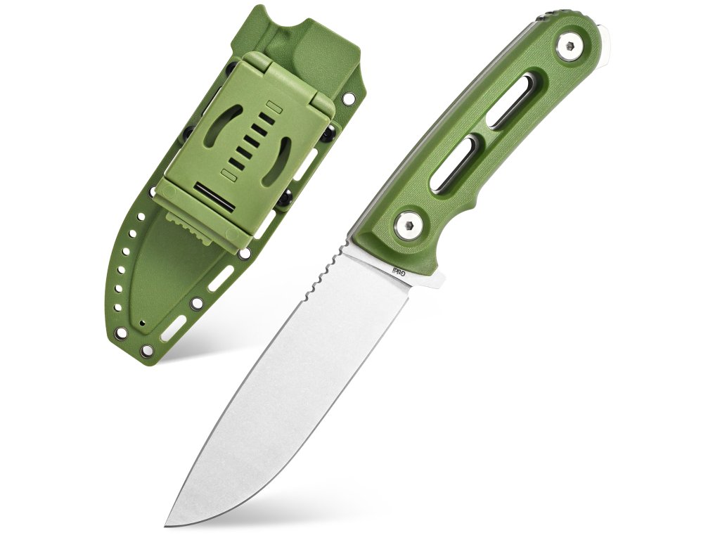 Základem nože GTK4 je robustní pevná čepel, která poskytuje maximální stabilitu a odolnost. Díky této konstrukci zvládne nůž náročnější úkoly, jako je práce se dřevem, řezání tvrdších materiálů, příprava jídla v terénu nebo nouzové situace při survivalu.