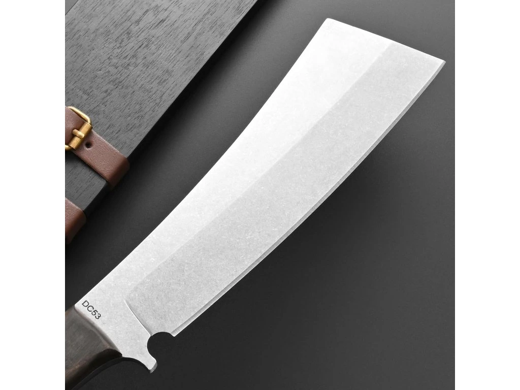 Čepel z nástrojové oceli DC53 vyniká vysokou tvrdostí, dlouhou výdrží ostří a velmi dobrou odolností proti opotřebení. Masivní tloušťka 6 mm umožňuje bez obav zvládat sekání, štípání třísek i další náročnější úkoly.