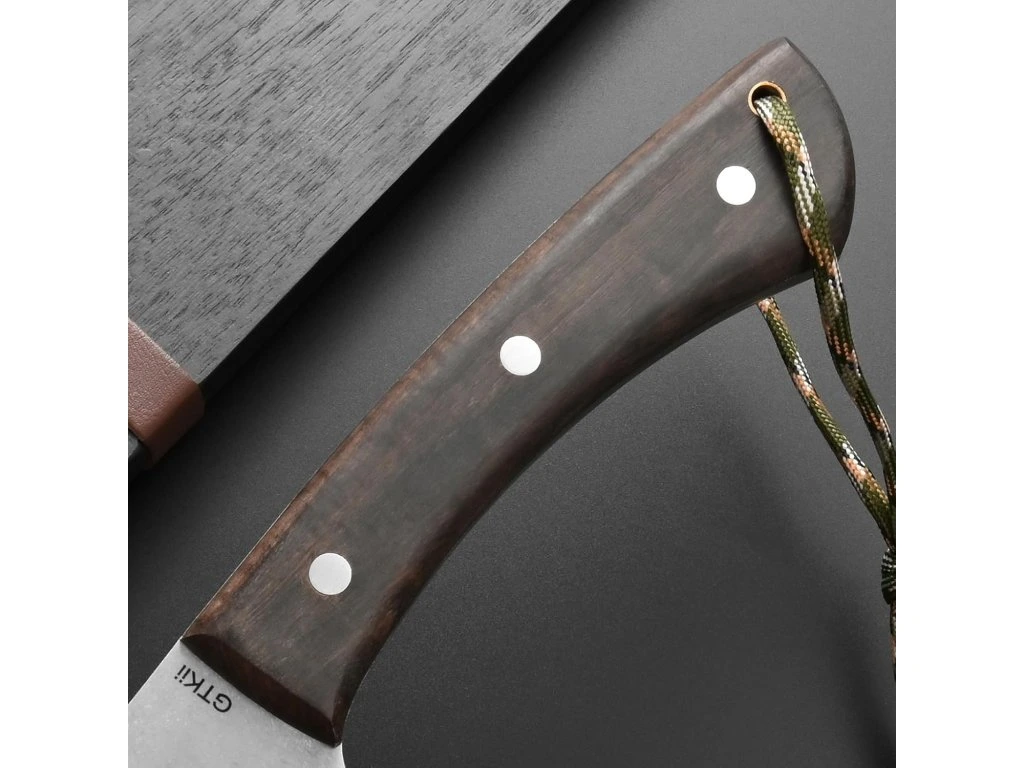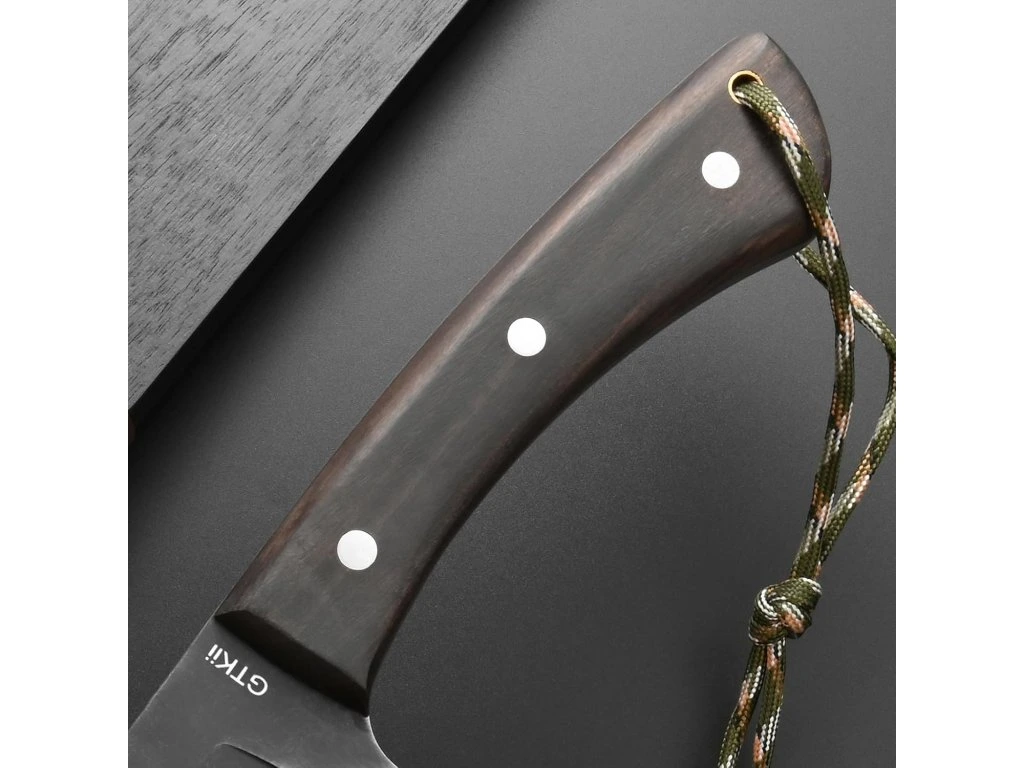 Ergonomicky tvarovaná rukojeť z ebenového dřeva zajišťuje pohodlný a jistý úchop a zároveň dodává noži elegantní vzhled. Kombinace funkčnosti a designu dělá z modelu GTK44 nejen pracovní nástroj, ale i atraktivní kousek do sbírky.