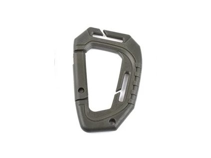 Zelená outdorová taktická karabina s ITW MOLLE průvleky na batoh (popruhy). Materiál: POM, rozměry: 87x56 mm, hmotnost: 18 g
