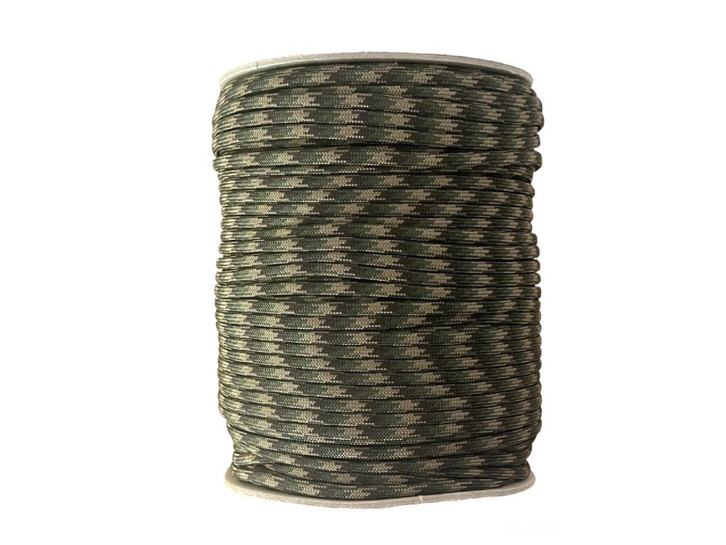 Paracord je dodáván ve svitku, který je zatavený ve fólii v barvách zelená, černá, hnědá a červená.