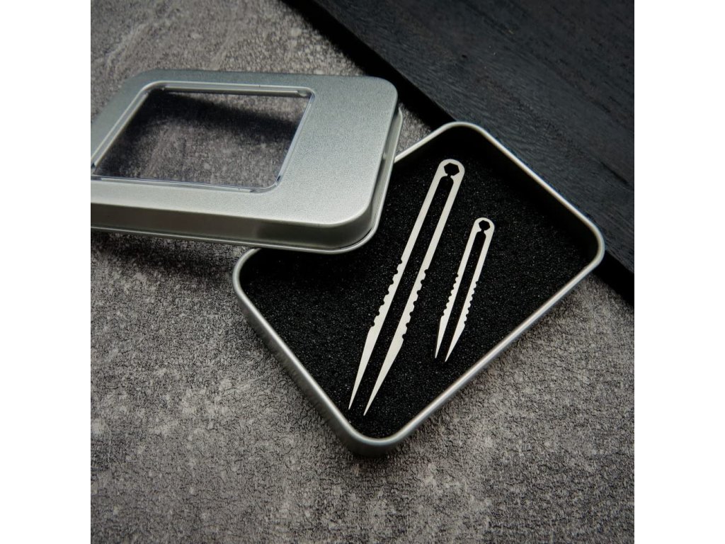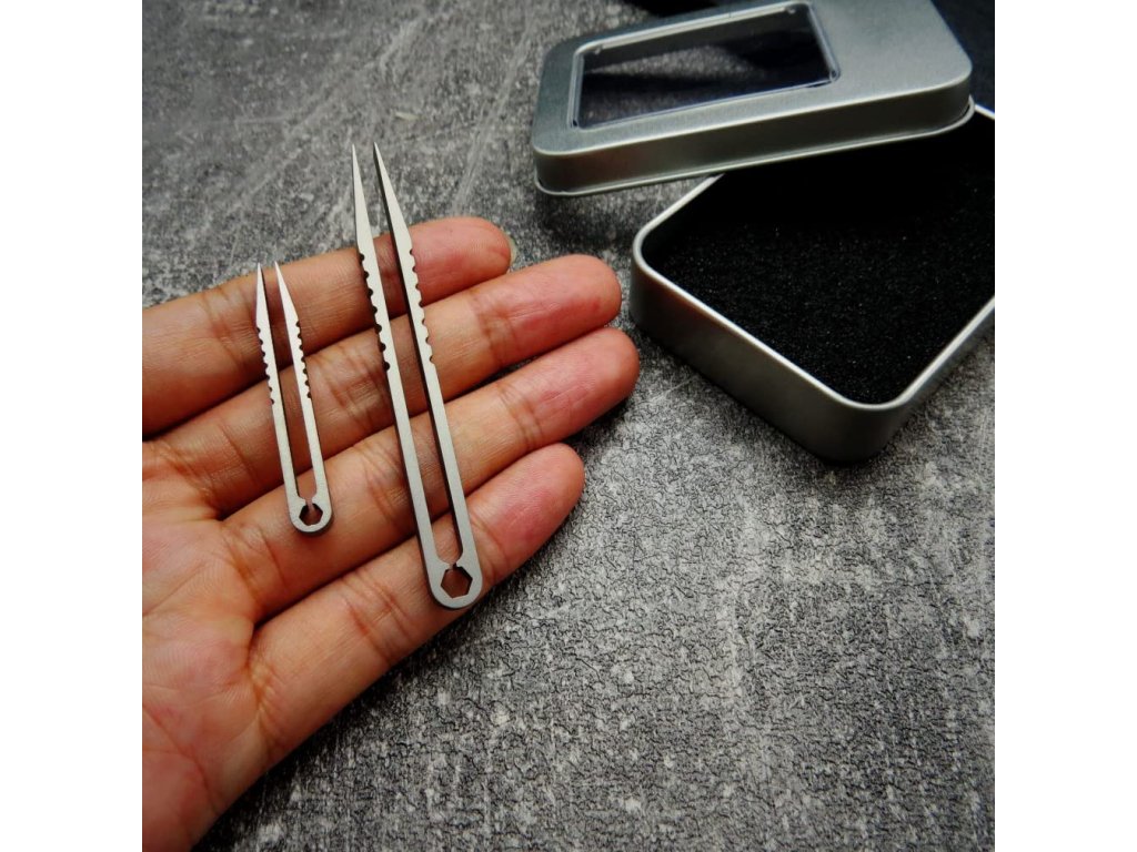 Představujeme sadu dvou titanových pinzet, vyrobených z lehké a zároveň extrémně odolné slitiny titanu — nástroj, který vás podrží v drobných, ale rozhodujících momentech. Tato sada obsahuje jednu větší pinzetu a jednu kompaktní verzi, takže vždy najdete tu správnou velikost pro daný úkol.