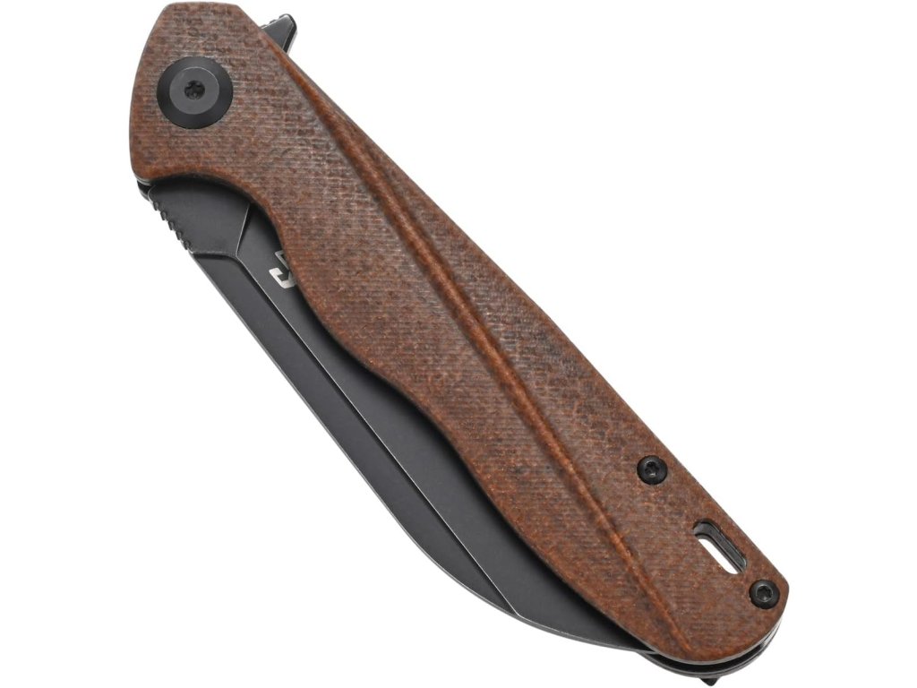 Ergonomicky tvarovaná rukojeť z materiálu G10 nebo Micarta přináší jistý úchop v jakýchkoliv podmínkách. Povrchová textura zabraňuje sklouznutí, zatímco minimalistické linie dodávají noži sofistikovaný vzhled.