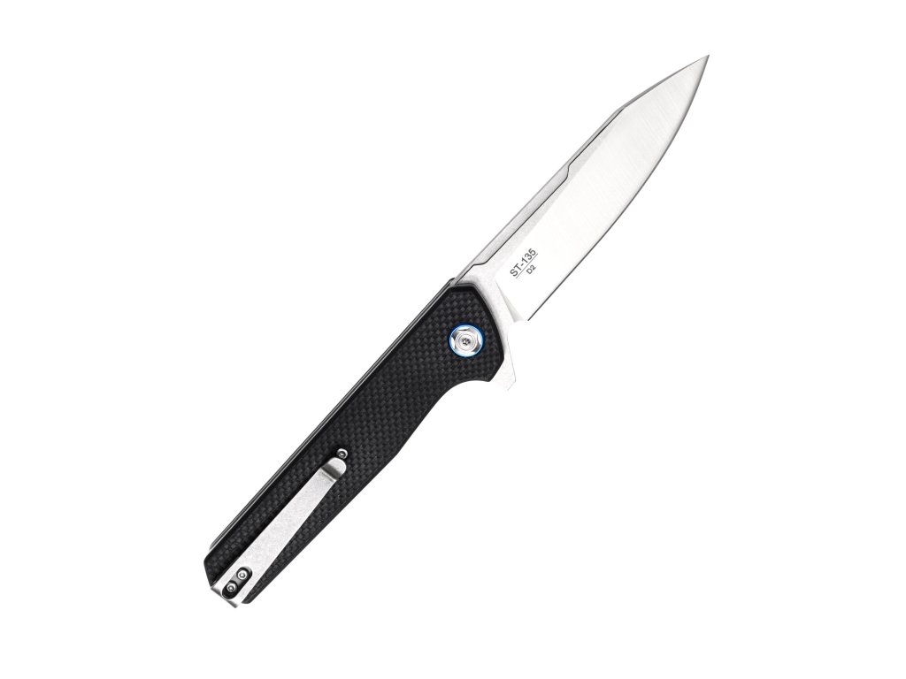Čepel z nástrojové oceli D2 dobře drží ostří a zvládne dlouhodobé používání bez častého broušení. Otevírání je díky ložiskovému mechanismu plynulé a rychlé, takže nůž pohodlně otevřeš jednou rukou. Spolehlivá pojistka liner lock drží čepel pevně na místě při práci a zároveň umožňuje snadné zavření.