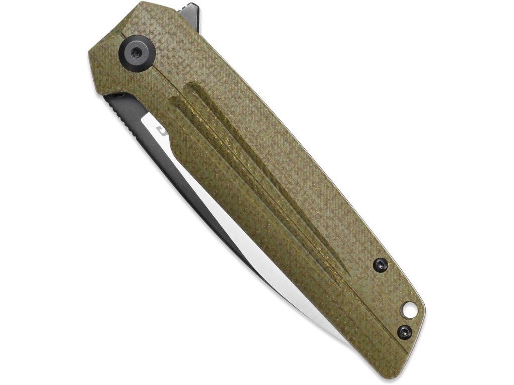 Rukojeť je z materiálu G10 a Micarta, který kombinuje pevnost s příjemným pocitem v ruce a výbornou stabilitou při úchopu. Tvar a provedení zajišťují, že má nůž dobré vyvážení a komfortní držení — ať už pracujete v rukavicích, za vlhka či v chladnějším prostředí. Klip pro přenášení umožňuje mít nůž vždy po ruce – připravený k okamžitému použití.