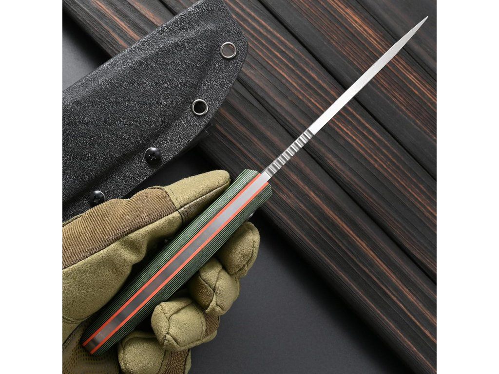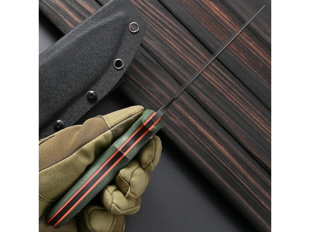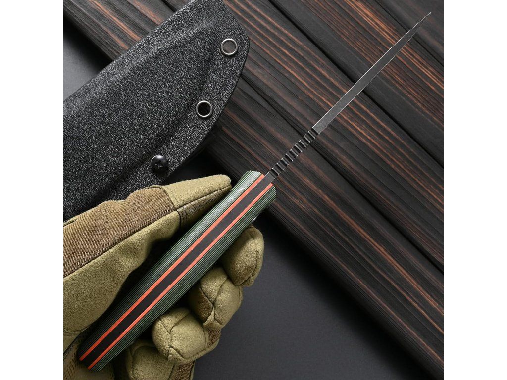 Rukojeť z materiálu G10 poskytuje pevný a jistý úchop i v mokrém nebo znečištěném prostředí. Ergonomické tvarování, prstová záštita a jemně zaoblené hrany zvyšují komfort a bezpečnost při delší práci.