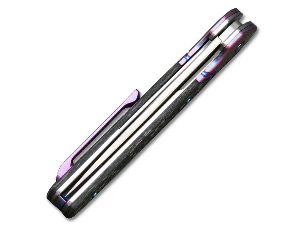 Titanová rukojeť s uhlíkovým vláknem – jedinečná kombinace lehkosti a pevnosti. Titan dodává konstrukci odolnost, zatímco karbonové panely vytváří moderní estetiku a zároveň snižují hmotnost. Ergonomicky tvarovaná rukojeť skvěle padne do ruky.
