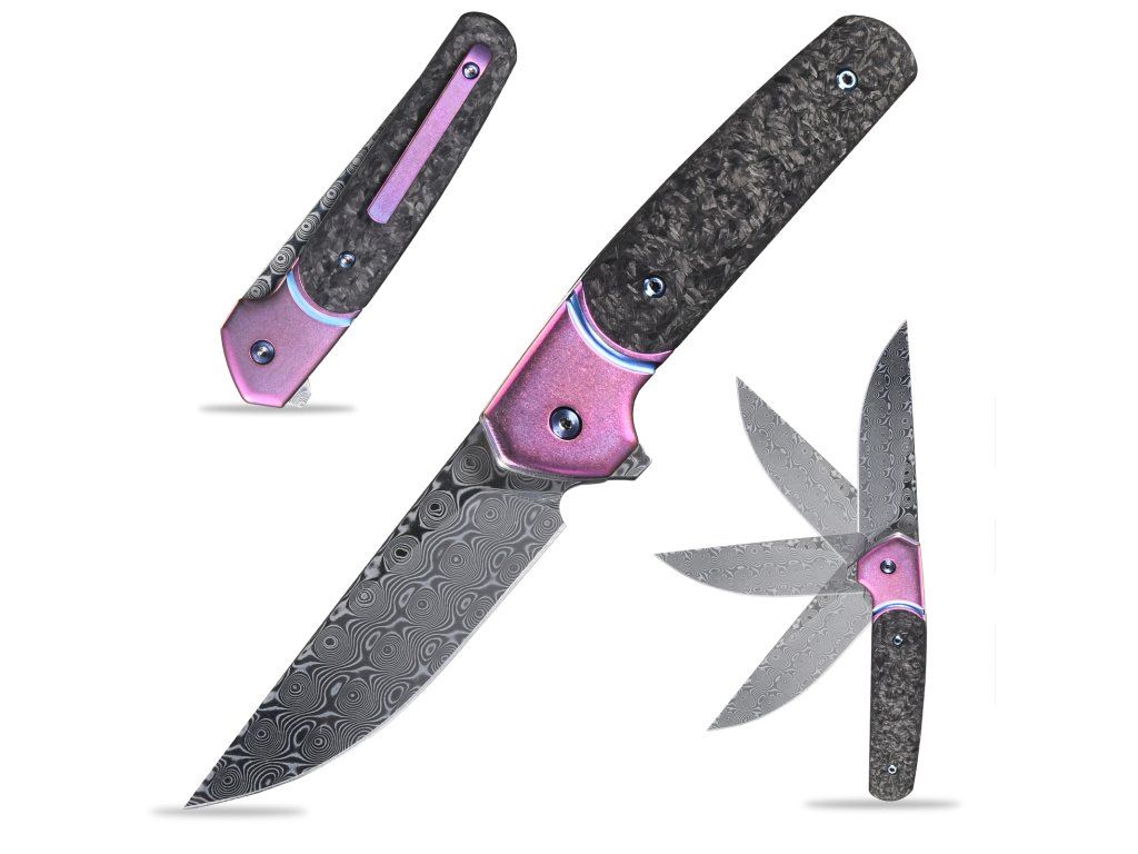 Exkluzivní vzhled – damašková čepel a karbonovo-titanová rukojeť působí moderně a prémiově