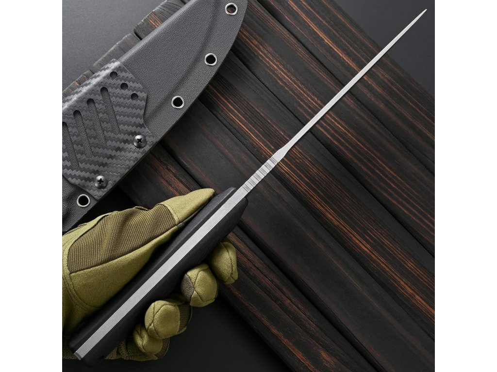 Základem nože je pevná konstrukce, kde čepel prochází celou rukojetí. Díky tomu je nůž výrazně pevnější než běžné zavírací modely a bez obav zvládne i náročnější úkoly — štípání menších kusů dřeva, práci s větvemi nebo přípravu materiálu na oheň.