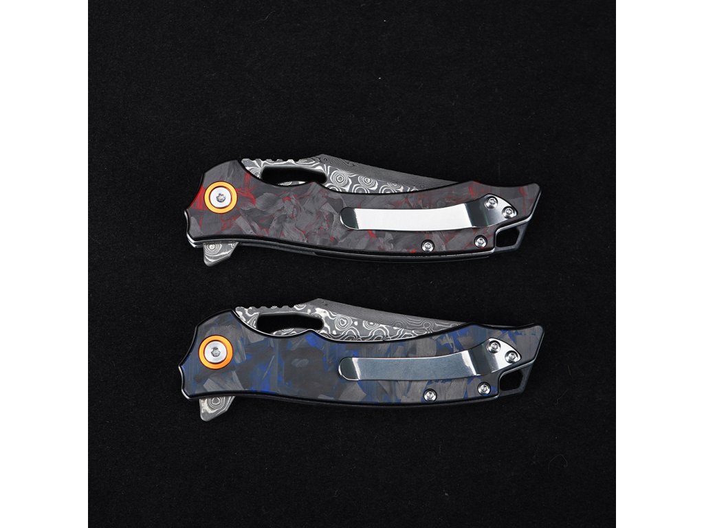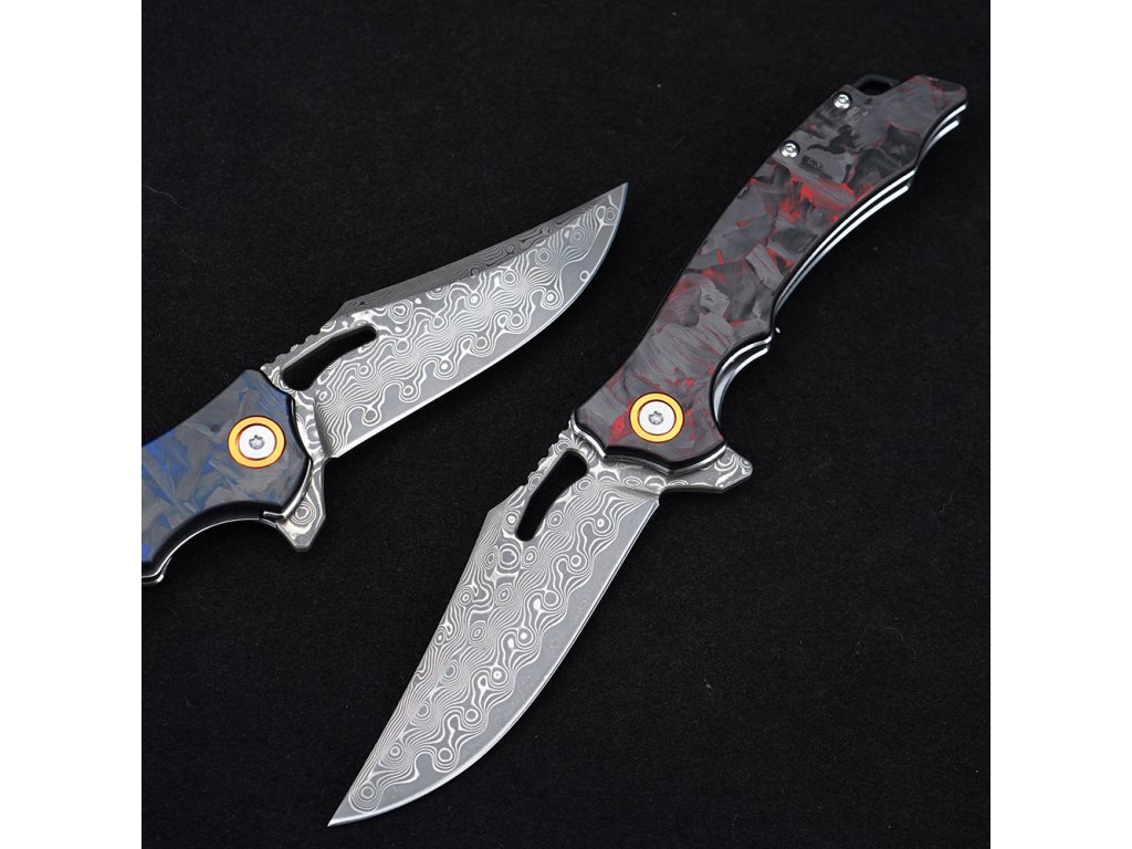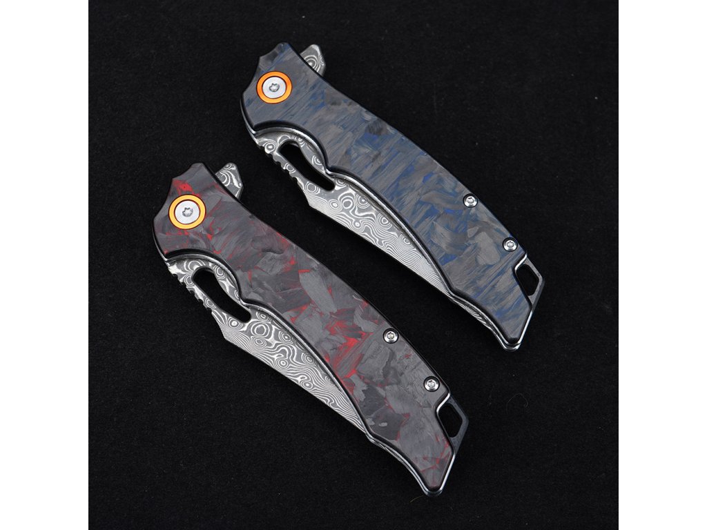 Zavírací nůž z damaškové oceli představuje kombinaci tradiční kovářské technologie a moderního designu. Model GT-DM026 je navržen jako praktický EDC nůž (Everyday Carry) pro každodenní použití, outdoorové aktivity, turistiku i kempování. Díky kvalitnímu zpracování, ostré čepeli a elegantní karbonové rukojeti je ideální nejen jako pracovní nástroj, ale také jako stylový doplněk nebo dárek pro milovníky nožů.